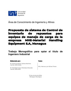 Jalinas Martínez, David Jonathan and Mendoza Alvarado, Randolph Josué (2024) Propuesta de sistema de Control de inventario de repuestos para equipos de manejo de carga de la empresa MHE-Material Handling Equipment S.A, Managua. Other thesis, Universidad Nacional de Ingeniería.