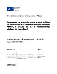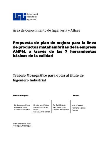 Potosme Vivas, Kenneth Elian and Roustan Urroz, Genaro Felipe Ramón and San José Gazo, Raúl Rubén (2024) Propuesta de plan de mejora para la línea de productos matahambritas de la empresa AMPM, a través de las 7 herramientas básicas de la calidad. Other thesis, Universidad Nacional de Ingeniería.