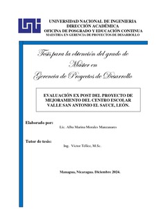 Morales Manzanares, Alba Marina (2024) Evaluación ex post del proyecto de mejoramiento del centro escolar valle San Antonio El Sauce, León. Masters thesis, Universidad Nacional de Ingeniería.