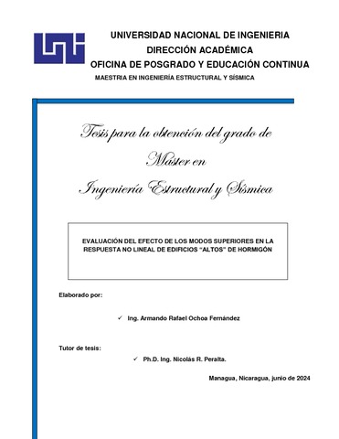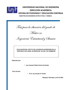 Ochoa Fernández, Armando Rafael (2024) Evaluación del efecto de los modos superiores en la respuesta no lineal de edificios “Altos” de Hormigón. Masters thesis, Universidad Nacional de Ingeniería.
