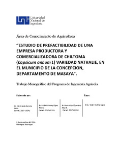 Barrera Cano, Kevin Jesús and López Rivera, Belén Nahomy and Quintero Ampié, Martin José (2024) Estudio de prefactibilidad de una empresa productora y comercializadora de chiltoma (capsicum annum l) variedad Nathalie, en el municipio de la Concepción, departamento de Masaya. Other thesis, Universidad Nacional de Ingeniería.