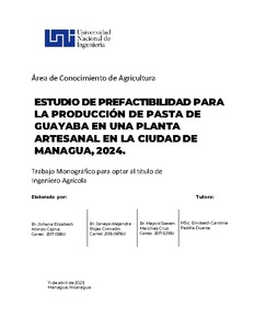 Alonzo Cajina, Johana Elizabeth and Rojas Conrado, Janeysi Alejandra and Martínez Cruz, Maycol Steven (2025) Estudio de prefactibilidad para la producción de pasta de guayaba en una planta artesanal en la ciudad de Managua, 2024. Other thesis, Universidad Nacional de Ingeniería.