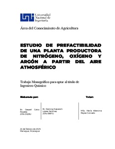 Calvo Rosales, Gessell; López and López Sánchez, Daining Nazareth (2025) Estudio de prefactibilidad de una planta productora de nitrógeno, oxígeno y argón a partir del aire atmosférico. Other thesis, Universidad Nacional de Ingeniería.