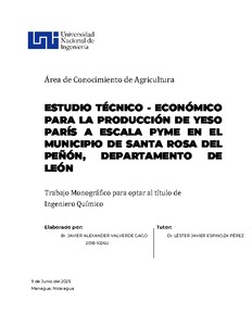 Valverde Gago, Javier Alexander (2025) Estudio técnico - económico para la producción de yeso parís a escala PYME en el municipio de Santa Rosa del Peñón, departamento de León. Other thesis, Universidad Nacional de Ingeniería.