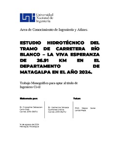 Cano Diaz, Cristopher Sebastian (2024) Estudio hidrotécnico del tramo de carretera río blanco – la viva esperanza de 26.91 km en el departamento de Matagalpa en el año 2024. Other thesis, Universidad Nacional de Ingeniería.