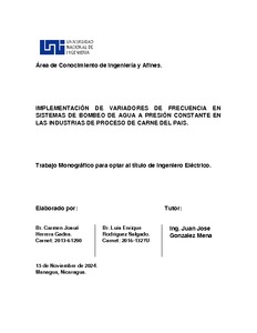Herrera Gadea, Carmen Josué and Rodríguez Salgado, Luis Enrique (2024) Implementación de variadores de frecuencia en sistemas de bombeo de agua a presión constante en las industrias de proceso de carne del país. Other thesis, Universidad Nacional de Ingeniería.