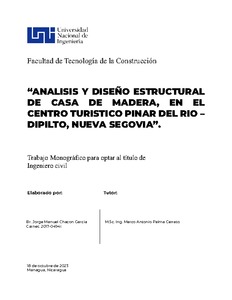 Chacon Garcia, Jorge Manuel (2023) Análisis y diseño estructural de casa de madera, en el centro turístico pinar del rio – Dipilto, Nueva Segovia. Other thesis, Universidad Nacional de Ingeniería.
