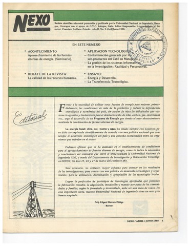 | Additional Information: | Revista científica trimestral promovida y publicada por la Universidad Nacional de Ingeniería, Managua, Nicaragua con el apoyo de G.V.C. Bologna, Italia. Editor Responsable: Arturo-Gollada, M. Di rector: Francisco Arellano Oviedo. Año II, No. 5 Abril/Junio 1988. |