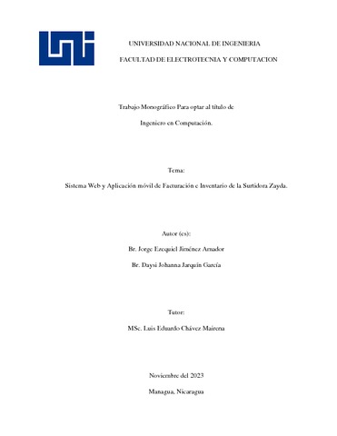 Jiménez Amador, Jorge Ezequiel and Jarquín García, Daysi Johanna (2023) Sistema Web y Aplicación móvil de Facturación e Inventario de la Surtidora Zayda. Other thesis, Universidad Nacional de Ingeniería.