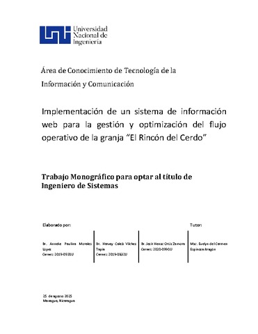 Morales López, Anneke Paulina and Vilchez Tapia, Harvey Caleb and Ortiz Zamora, Jezir Henoc (2025) Implementación de un sistema de información web para la gestión y optimización del flujo operativo de la granja El Rincón del Cerdo. Other thesis, Universidad Nacional de Ingeniería.