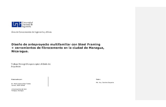 Ríos Toledo, María Victoria (2024) Diseño de anteproyecto multifamiliar con Steel Framing + cerramientos de fibrocemento en la ciudad de Managua, Nicaragua. Other thesis, Universidad Nacional de Ingeniería.