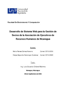 Gómez Navarro, María Renee and Sotomayor Gutiérrez, Felipe Alejandro (2023) Desarrollo de Sistema Web para la Gestión de Socios de la Asociación de Ejecutivos de Recursos Humanos de Nicaragua. Other thesis, Universidad Nacional de Ingeniería.