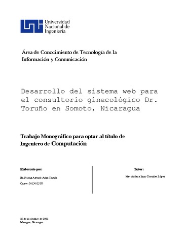 Arias Toruño, Norlan Antonio (2025) Desarrollo del sistema web para el consultorio ginecológico Dr. Toruño en Somoto, Nicaragua. Other thesis, Universidad Nacional de Ingeniería.